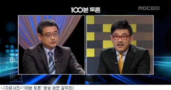 29일 MBC ''100분 토론''이 끝나고 패널로 참가했던 곽동수 숭실사이버대학교 교수와 변희재 미디어워치 대표가 트위터에 소감을 전했다.