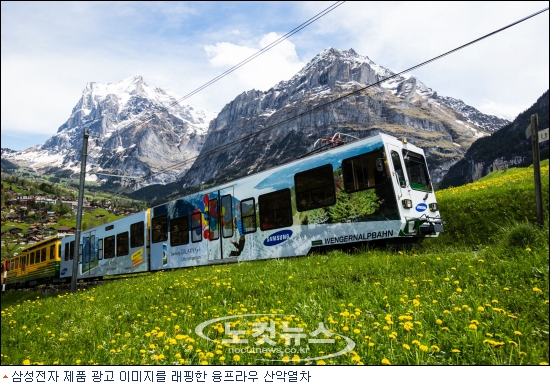 삼성전자 제품 광고 이미지를 래핑한 융프라우 산악열차