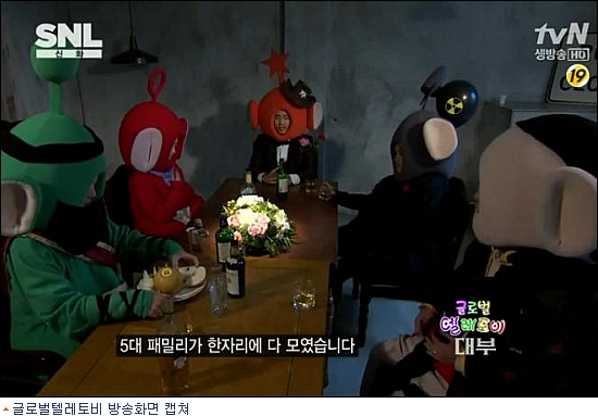 여의도 텔레토비는 대선이 끝난뒤 글로벌 텔레토비로 진화했다. 박근혜 대통령 취임직전인 2월23일 첫 방송된 tvN 예능 프로그램 ''SNL코리아''에서는 새로 반장에 당선된 ''또''(박근혜 대통령 역)가 중심이 돼 윗동산 반장 정으니(김정은 역)먼동산 반장 오바돌이(오바마 역), 이웃동산 반장 야매(아베 신조 역), 큰동산 반장 시핑(시진핑 역)을 내세웠다.