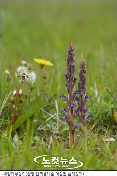 벌써 5월이 끝나갑니다. 숲속에는 나뭇잎이 많이 자라 햇볕을 가리고 있기 때문에 난초과 식물들을 빼고는 들꽃을 보기가 쉽지 않습니다. 그러나 한라산 높은 곳의 풀밭이나 바닷가에는 들꽃들로 지천입니다. 제주의 동쪽 바닷가에는 갯메꽃이 아직도 붉은 꽃을 힘차게 피워내고 있고 갯까치수영도 검은색의 바위를 흰색으로 바꿔놓고 있습니다. 그리고 조금 떨어진 모래언덕에는 아주 독특한 모습의 초종용이 시선을 멈추게 합니다. 그리고 이달 초 꽃이 졌지만 초종용과 비슷한 백양더부살이라는 꽃도 있습니다. 두 식물은 모두 다른 식물에 기생하여 살아가면서 원시성을 느끼게 해주는 꽃의 모습 때문에 늘 관심의 대상입니다.
