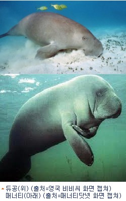 매너티는 어린 새끼를 안고 젖을 먹이는 모습이 마치 사람과 닮아 인어로 불리기도 한다.