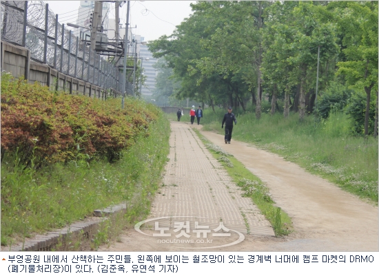 ◈ "조사결과, 정화계획부터 공개해야"공원 입구 바로 왼쪽으로 캠프 마켓의 DRMO(폐기물처리장)가 눈에 들어왔다. 오염 문제가 부각이 되면서 현재는 폐쇄된 상태다.