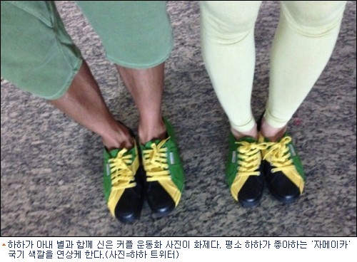 공개된 사진 속에서 하하와 별은 ''''자메이카''''를 연상시키는 무늬의 커플 운동화를 함께 신고 있다. 평소 하하는 유별난 자메이카 사랑으로 유명하다.