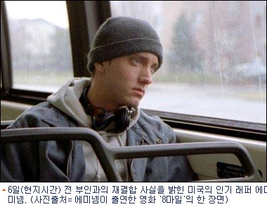 에미넴은 6일(현지시간) 미국 디트로이트 WKQI-FM의 라디오 프로그램인 ''모조 인 더 모닝(Mojo in the Morning)''을 통해 "전 부인과 화해했으며 아마도 우리는 다시 결혼하게 될 것"이라는 계획을 전했다.