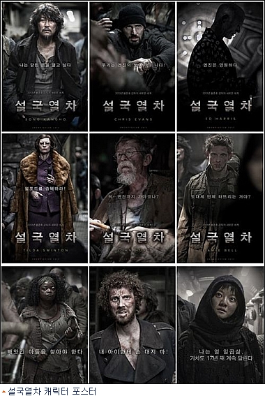 ''설국열차'' 배급을 담당한 CJ엔터테인먼트 측은 10일 오전 영화 스틸로 디자인된 2차 캐릭터 포스터들을 공개해 네티즌들의 뜨거운 관심을 받았다.