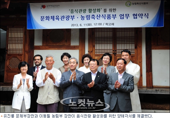 유진룡 문체부장관과 이동필 농림부 장관이 음식관광 활성화를 위한 양해각서를 체결했다.