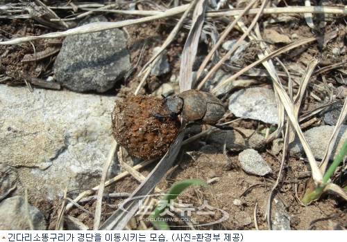 지난 1990년 마지막으로 발견된 이후 자취를 감췄던 멸종위기종 긴다리소똥구리가 23년만에 영월에서 발견됐다.