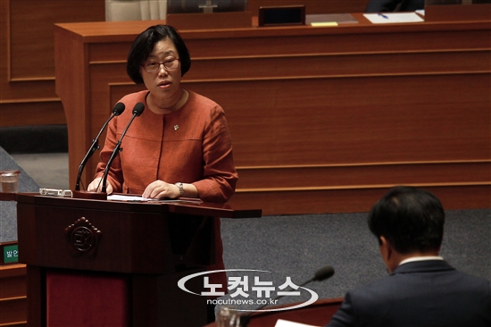 12일 오후 제316회 국회(임시회) 제6차 본회의에 참석한 윤진숙 해양수산부 장관이 질문에 답하고 있다.