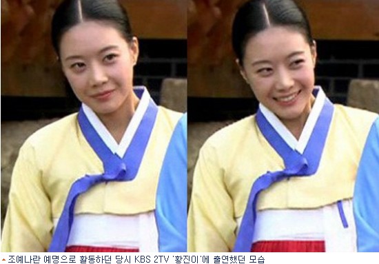 최근엔 ''류시원 아내 조예나 황진이 사진''이라는 제목으로 ''황진이''에서 황진이(하지원)의 기생 동기 향림 역으로 출연한 모습이 온라인 커뮤니티를 통해 공개되게도 했다. 사진 속 조 씨는 하얀 피부에 청순한 미모를 과시하고 있다.