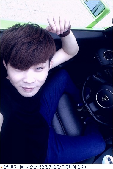 지난 11일 백청강은 자신의 미투데이에 "어제 저녁 작업 끝나고 한강으로 산책하러 갔어요. 내 사랑 람보와 같이."라는 글과 함께 람보르기니와 함께 찍은 사진을 올려 파장을 일으켰다.[BestNocut_R]
