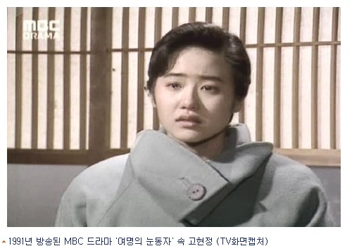 고현정을 스타덤에 안게 한 드라마는 1993년 방송된 MBC 드라마 ''''엄마의 바다''''였지만 그녀의 숨겨진 청순미를 엿볼 수 있었던 작품은 1991년 작 MBC ''''여명의 눈동자''''였다. 당시 고현정은 남자주인공 장하림(박상원 분)을 사모하는 이중간첩 안명지역으로 여주인공 여옥 역의 채시라 못지 않은 강한 임팩트를 남겼다.