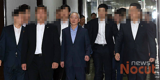 남재준 국정원장이 25일 오전 국회 정보위원회 전체회의에 참석하기 위해 회의실로 들어가고 있다. 국정원의 남북정상회담 회의록 공개 파장이 계속되고 있는 가운데 남재준 국정원장은 이날 한기범 제1차장과 함께 현안보고를 한다.