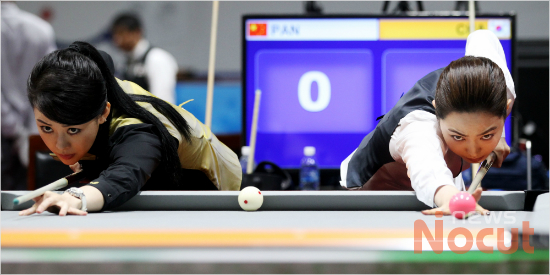 3일 오후 인천 송도컨벤시아에서 열린 제4회 인천실내무도아시아경기대회 여자 10볼 개인전 준준결승에서 한국의 차유람과 중국의 판 샤오팅이 경기를 펼치고 있다.