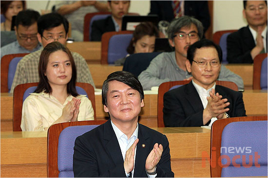 무소속 안철수 의원이 8일 오전 국회 의원회관 소회의실에서 열린 '국정원 어떻게 바꿀 것인가?-국가정보원 재정립을 위한 개혁방안 토론회' 에 참석해 박수를 치고 있다.