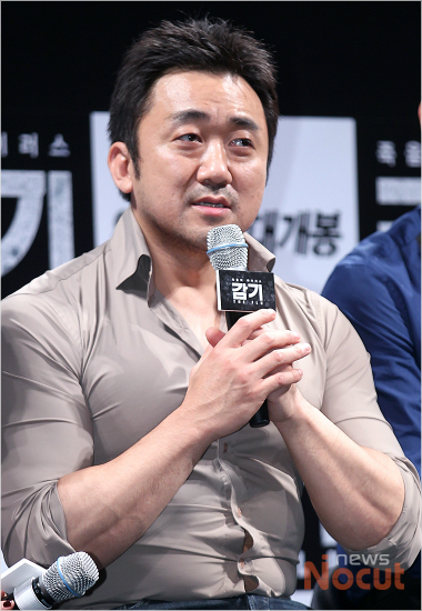 영화 '감기' 제작보고회가 9일 오전 서울 신사동 압구정 CGV에서 열린 가운데 배우 마동석이 취재진의 질문에 답하고 있다.