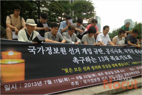 국정원의 대선개입 의혹에 관한 국정조사가 파행을 거듭하고 있는 가운데 기독교공동대책위원회가 어제(11일) 광화문 일대에서 철저한 진상규명을 촉구하는 기도회를 열었다.
