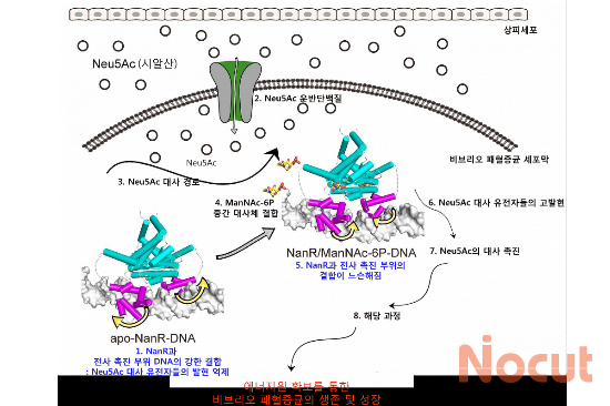 NanR 단백질 구조가 변형되면, N-아세틸뉴라믹산을 에너지원으로 활용할 수 있는 패혈증균 대사 효소들의 발현이 증가하고, 패혈증균은 생존을 통한 성장을 반복하면서 병원성을 발휘하게 된다.