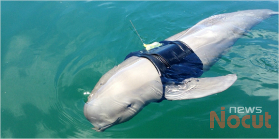 상괭이 2마리 중 1마리에게 위성 추적 장치(Satellite Tag)를 부착해 방류했다.