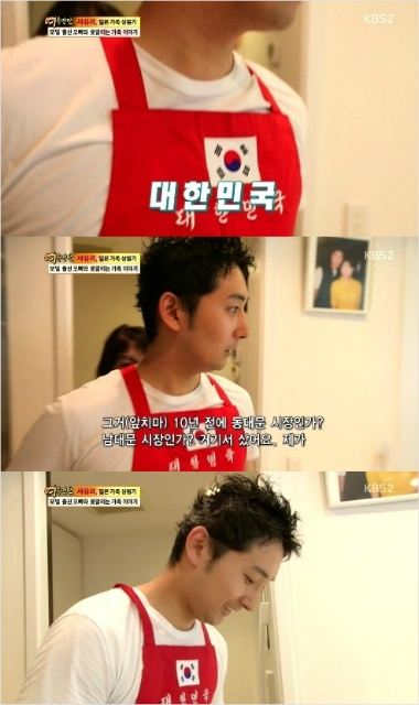 사유리의 오빠는 오랜만에 본가를 찾은 사유리를 위해 손수 요리에 나섰다. 특히 그는 ‘대한민국’이라고 적혀 있는 앞치마를 착용해 궁금증을 자아냈다.