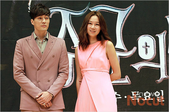 30일 오후 서울 목동 SBS에서 열린 드라마스페셜 '주군의 태양' 제작발표회에 참석한 공효진(오른쪽)과 소지섭이 포토타임을 갖고 있다.