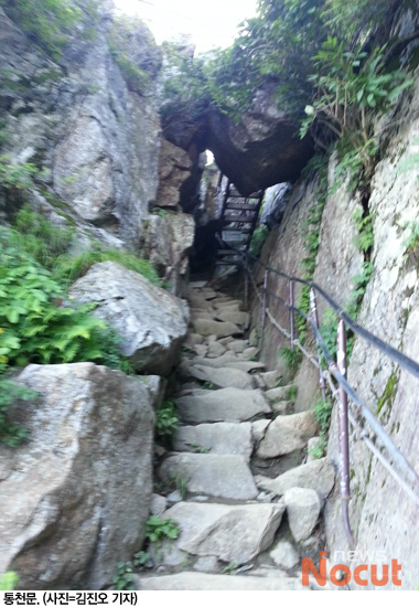 이제 저 가파른 오름길만 끝마치면 된다는 생각만이 뇌리를 지배한 채 한 걸음, 한 걸음 돌계단 길을 내딛는다. 숨은 헉헉된다. 가쁜 숨을 몰아쉬느라 정신이 없다. 땀이 비오 듯 쏟아진다. 그래도 고지가 저기인데 라며 어금니를 물고 땀범벅이 된 얼굴로 어느 덧 정상을 밟는다.