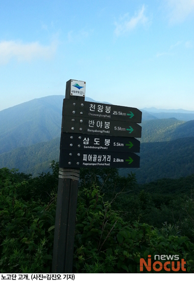 막판 스퍼트를 냈어도 5분 정도 어긴 2013년 7월 26일 오후 6시 5분쯤에야 노고단 능선에 다다랐다. 그런데 아무도 없었다. 공단 직원에게 몇 분 어겨 통과해 정말 미안하다는 말을 줄곧 생각하며 1㎞를 내달리다시피 했는데 아무도 없다니, 잘 됐다는 안도감과 함께 괜히 막판 땀을 쏟았네라는 아쉬움이 교차하는 순간이었다.
