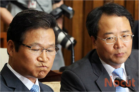 김용판 전 서울경찰청장이 16일 오전 서울 여의도 국회에서 열린 국가정보원 댓글의혹 사건 등의 진상규명을 위한 국정조사 청문회에 증인으로 출석, 물을 머금은채 생각에 잠겨 있다.