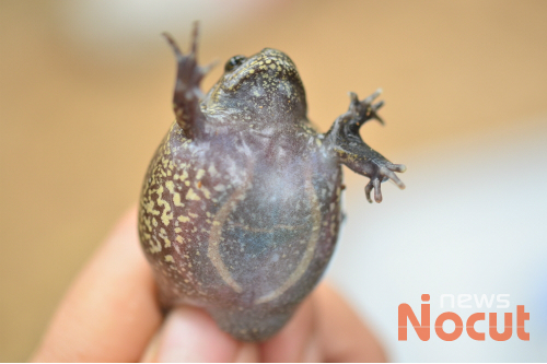 인천 부영공원에서 발견된 앞다리가 3개 달린 기형맹꽁이(제공=인천녹색연합)