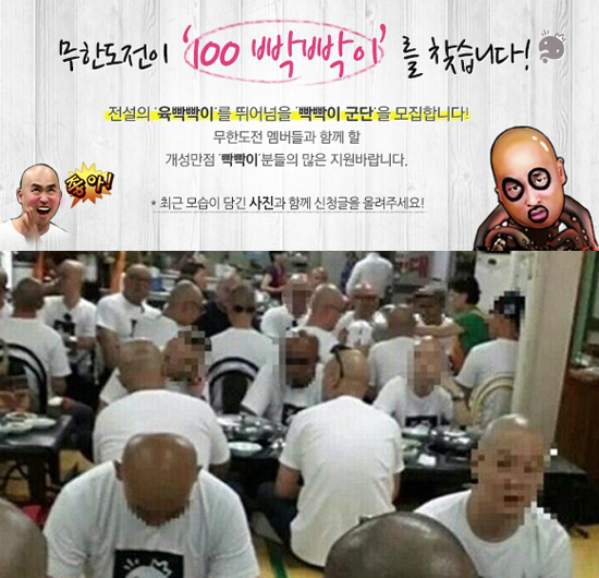 '무한도전 100빡빡이' 사진이 온라인상에서 화제가 되고있다.