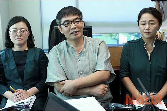 통합진보당 이석기 의원 등의 '내란음모 피의사건' 변호를 맡은 법무법인 다산 김칠준 대표변호사(가운데)를 비롯한 공동변호인단이 4일 오전 서울 서초동 사무실에서 국정원 내란음모 조작 및 공안탄압 규탄 대책위원회 기자회견을 갖고 현재까지 활동경과와 계획 등을 밝히고 있다. 김칠준 변호사는 이날 기자회견에서 "국가정보원이 수사권을 빙자해 정치를 하고 있다"고 밝혔다.