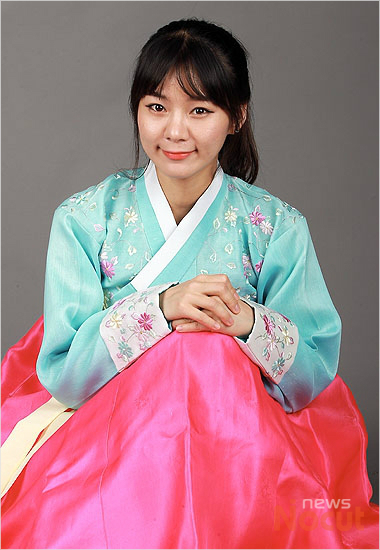 MBC 예능프로그램 '무한도전' 에서 리포터로 맹활약중인 개그우먼 맹승지가 16일 오후 서울 목동CBS에서 인터뷰 전 추석인사를 전하고 있다. (한복 협찬=솜씨명가)