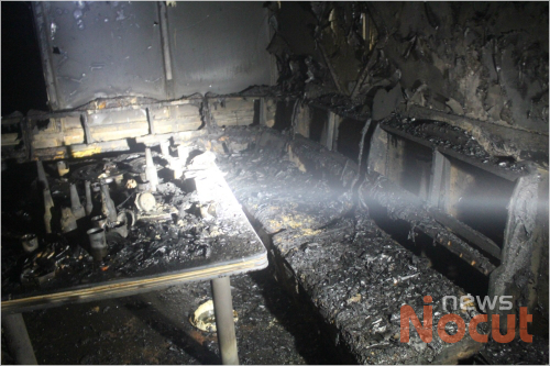 26일 제주시 모 단란주점에서 불이나 3명이 숨졌다. 사진은 전소된 단란주점 내부.