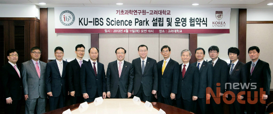 고려대학교(KU)와 기초과학연구원(IBS)은 지난 4월 11일 고려대에서 'KU-IBS 가속기과학 대학원 설립 및 중이온가속기 연구개발 시설 운영을 위한 양해각서를 체결했다. (IBS 제공)
