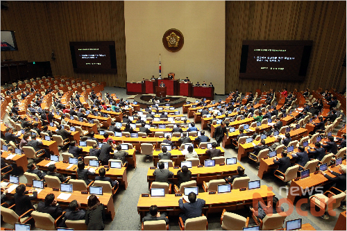 박근혜 정부 첫 정기국회가 문을 연지 한 달여 만인 30일 오후 국회 본회의에서 의사일정을 의결하고 있다.
