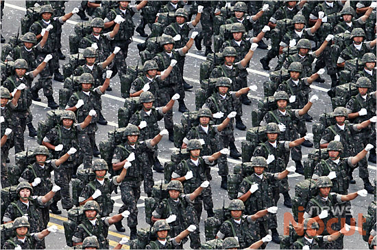 건군 65주년 국군의 날인 1일 오후 서울 세종대로에서 시가행진이 펼쳐지고 있다. 이번 시가행진은 지난 2008년 이후 5년만에 전차, 장갑차, 미사일과 4500여명의 병력이 참가, 서울역-서울시청-세종로-종각역 사거리-동묘앞 일대에서 펼쳐진다.