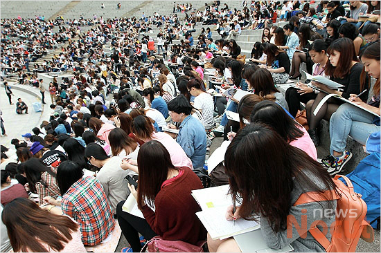 한글날을 이틀 앞둔 7일 오전 서울 신촌 연세대학교 노천극장에서 열린 ‘제22회 외국인 한글백일장’ 참가한 외국인 학생들이 한글 실력을 뽐내며 글짓기 삼매경에 빠져 있다.