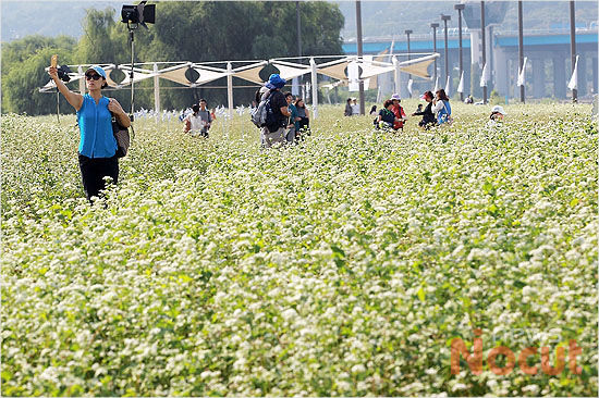눈 내린 듯한 메밀꽃밭 느끼는 시민들