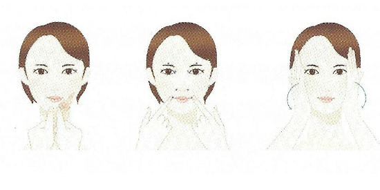 먼저 턱 아래쪽을 엄지 손가락으로 10초간 지긋이 누르면서 전체적인 윤곽의 혈을 풀어준 다음 양 입가, 눈 앞머리, 관자놀이, 이마중앙을 순서대로 지긋이 눌러준다.