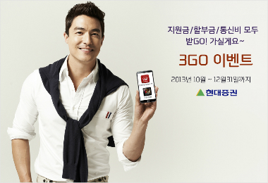 현대증권은 최신 스마트폰으로 주식을 거래하고 매월 지원금·통신비·할부금을 모두 지원받을 수 있는 '3GO 이벤트'를 진행하고 있다.