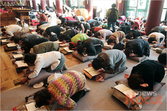 2014학년도 대학수학능력시험이 10여일 앞으로 다가온 가운데 27일 오후 서울 종로구 조계사에서 수험생을 둔 학부모들이 수능기도를 올리고 있다.