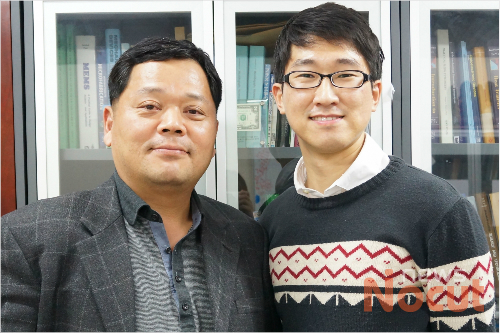 포항 포스텍은 기계공학과 임근배 교수, 조성진(사진 오른쪽) 씨 연구팀이 연잎효과를 응용, 섬유구조물과 나노구조체를 이용해 원래 길이에서 3배 이상 늘려도 그 성질이 그대로 유지되는 초소수성 가스투과막을 세계 최초로 개발하는데 성공했다고 4일 밝혔다.