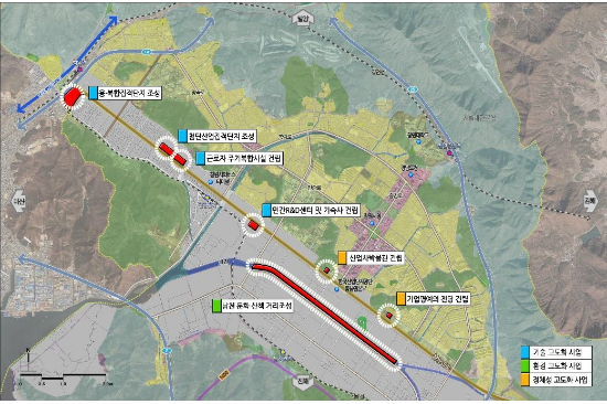 융.복합집적단지조성사업은 2012년~2018년까지 1천495억 원이 투입되며 첨단산업집적단지 조성사업은 2016년~2018년까지 4천억 원이 투입되고 근로자 주거복합시설 건립사업은 2014년~2016년까지 1천80억 원이 투입된다.