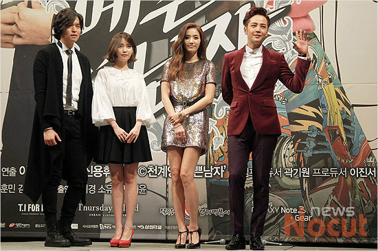 18일 오후 서울 논현동 임피리얼팰리스 호텔에서 열린 KBS수목드라마 ‘예쁜남자’ 제작발표회에서 이장우(왼쪽부터), 아이유, 한채영, 장근석이 포즈를 취하고 있다.