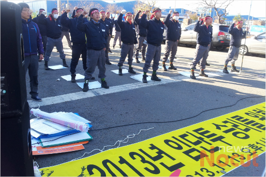 회사 앞에서 집회를 연 광양 초남산단 bnB 성원 노조