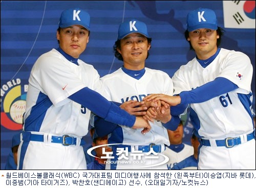 박찬호,이승엽,최희섭,김병현,서재응 등 해외파를 포함해 이종범,손민한,진갑용,이병규 등 월드베이스볼클래식(WBC)에 참가할 대표팀 선수들은 9일 오후 2시 30분 서울 잠실 롯데월드호텔 3층 크리스탈볼룸에서 오리엔테이션과 유니폼 발표회를 가졌다.