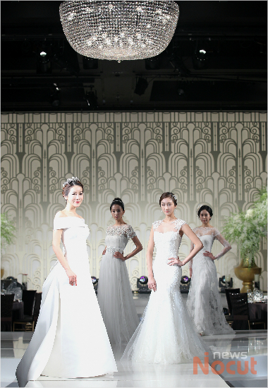 26일 서울 역삼동 GS타워 아모리스홀에서 아워홈 주최로 열린 '제3회 아모리스 웨딩쇼'에서 모델들이 다양한 국내외 명품 브랜드의 웨딩드레스와 파티룩을 선보이고 있다.