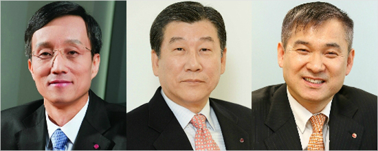 왼쪽부터 MC사업본부장 박종석 사장, 최고재무책임자 정도현사장, HE사업본부장 하현회 사장