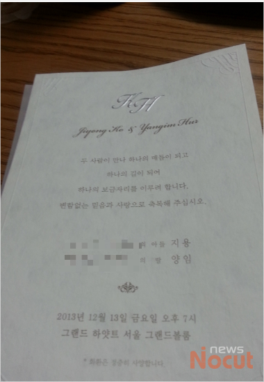 고지용과 허양임 씨는 청첩장을 통해 "두 사람이 만나 하나의 매듭이 되고 하나의 길이 되어 하나의 보금자리를 이루려 합니다"라며 "변함없는 믿음과 사랑으로 축복해 주십시요"라고 밝혔다.