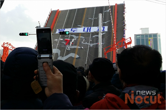 살아생전 도개 장면을 다시 볼 수 없을지도 모른다고 생각했던 머리 희끗희끗한 어르신들은 대교 상판이 올라오자 감격의 눈물을 멈추지 못했다.