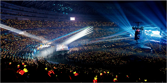 빅뱅은 이번 돔 공연이 규모가 큰 만큼 객석이 먼 관객을 위해 무대 전체가 움직이는 플라잉 스테이지와 무빙카를 이용해 관객 한 명 한 명과 가까이서 눈을 맞췄다.